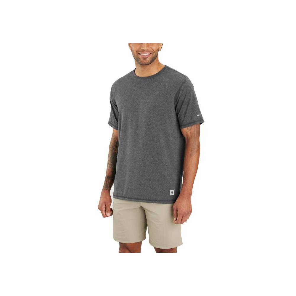 Cuanto más calor hace fuera, más difícil es mantener la concentración. Esta camiseta Carhartt de manga corta para hombre es superligera y transpirable, para que te sientas lo mejor posible cuando sube el mercurio. Hecha para los trabajos más exigentes, también se seca rápido, combate los olores y tiene mucha elasticidad. Las cintas reflectantes ayudan a aumentar la visibilidad en los días en los que sales antes que el sol.