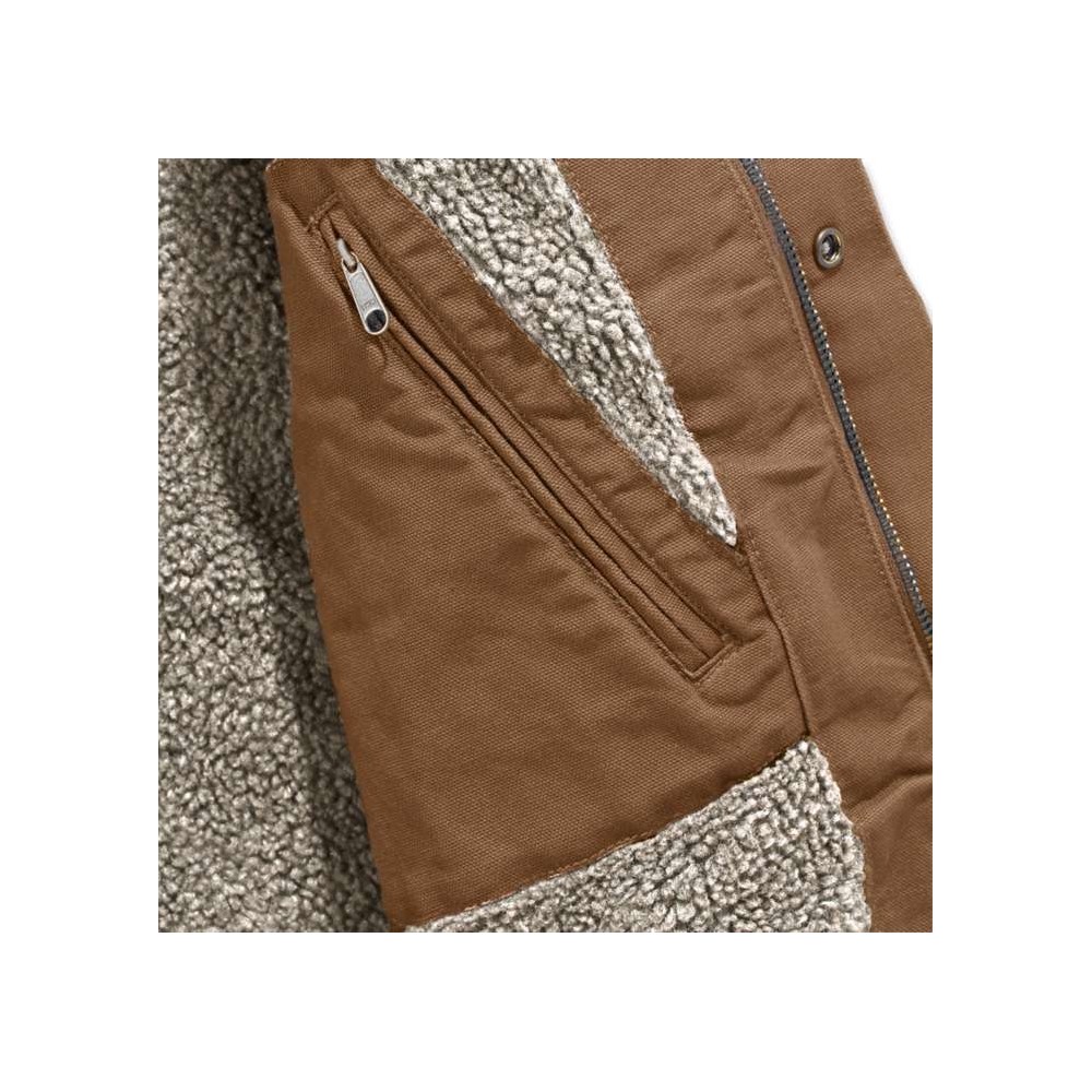 Esta chaqueta para hombre está fabricada para sobrellevar el frío, el viento y las jornadas largas de trabajo. Robusta pero sin ser rígida, está fabricada con Duck de algodón resistente. Este abrigo cálido cuenta con un forro en tejido polar suave de borreguillo en la parte que cubre el cuerpo y la capucha y, también, cuenta con nailon acolchado en la parte de las mangas.