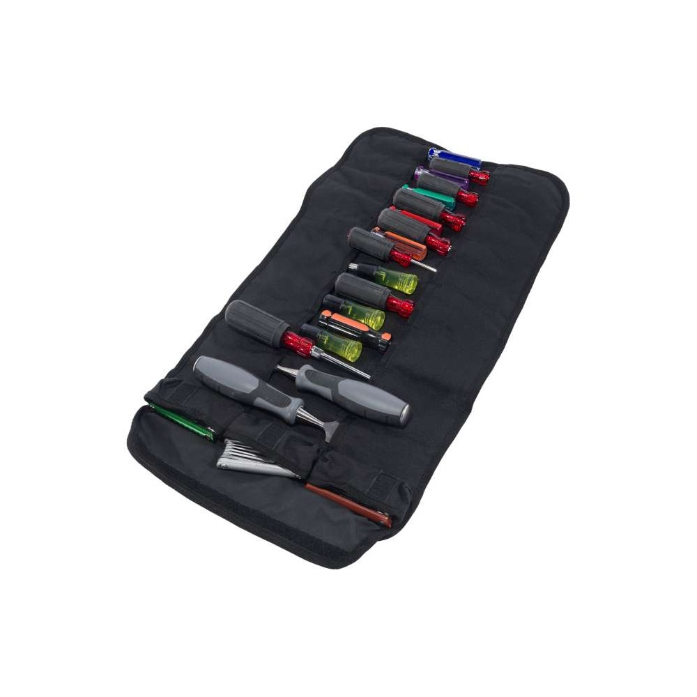 Práctico, versátil y superresistente, este estuche portaherramientas te ofrece una forma compacta para almacenar tus herramientas. Cuenta con 18 bolsillos de diferentes tamaños, dos bolsillos con cremallera ideales para tuercas o tornillos y tres bolsillos laterales grandes. Este estuche está confeccionado en un material resistente a la abrasión que soporta la llovizna.