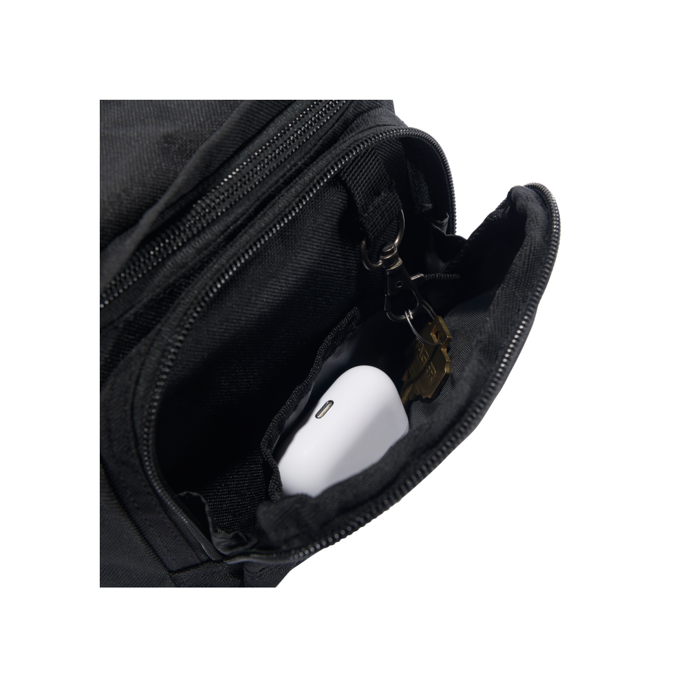 - Compartimento en la parte frontal con cierre de cremallera y llavero