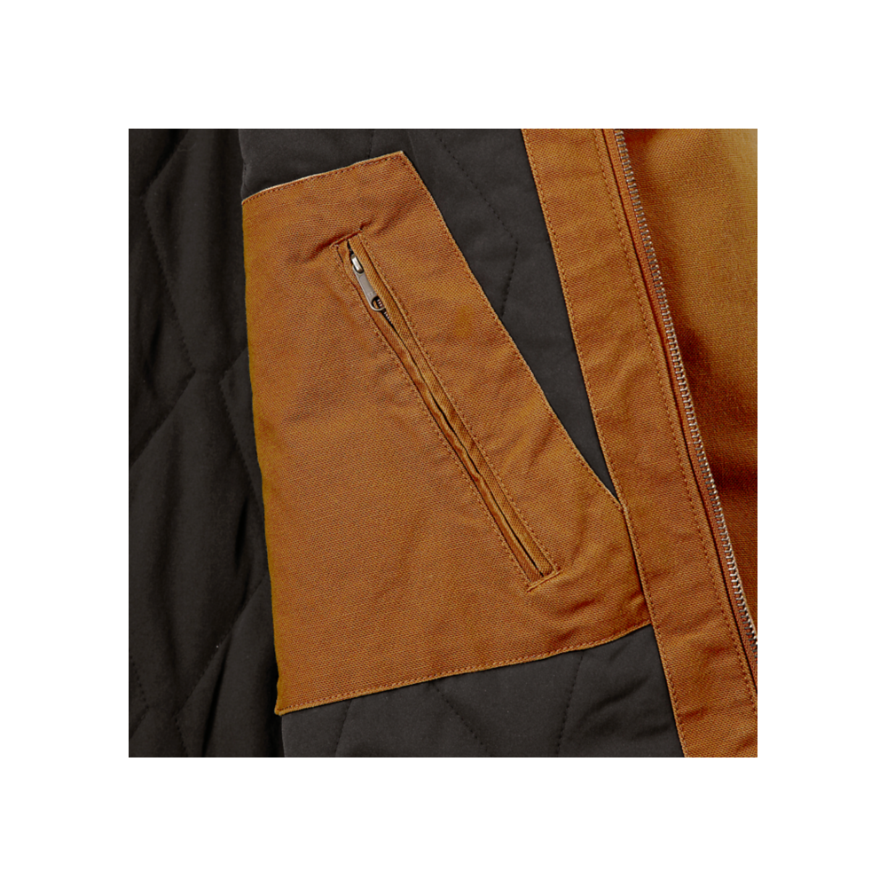 Prepárate para el frío, ya sea al aire libre o en el trabajo, con esta chaqueta western para hombre. Su robusto tejido de lona de pato es lo suficientemente resistente para cualquier trabajo, pero tiene un ajuste holgado y flexible que te permite moverte con total libertad. Además, está forrado y aislado para abrigar en los días más frescos.