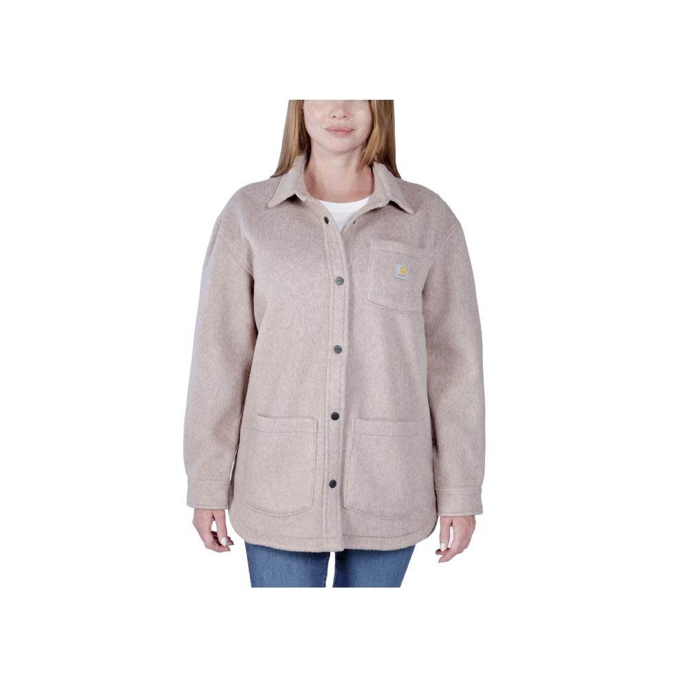 Cuando el día empieza fresco, ponte esta camisa jac de Carhartt para mujer para ampliar tu rango de confort. La mezcla de forro polar tiene un tacto similar a la lana que aguanta tanto los días informales como la ropa de trabajo. Tiene un corte holgado para que puedas moverte con libertad y puedas vestirte fácilmente. Los tres bolsillos permiten tener a mano los objetos de uso diario.