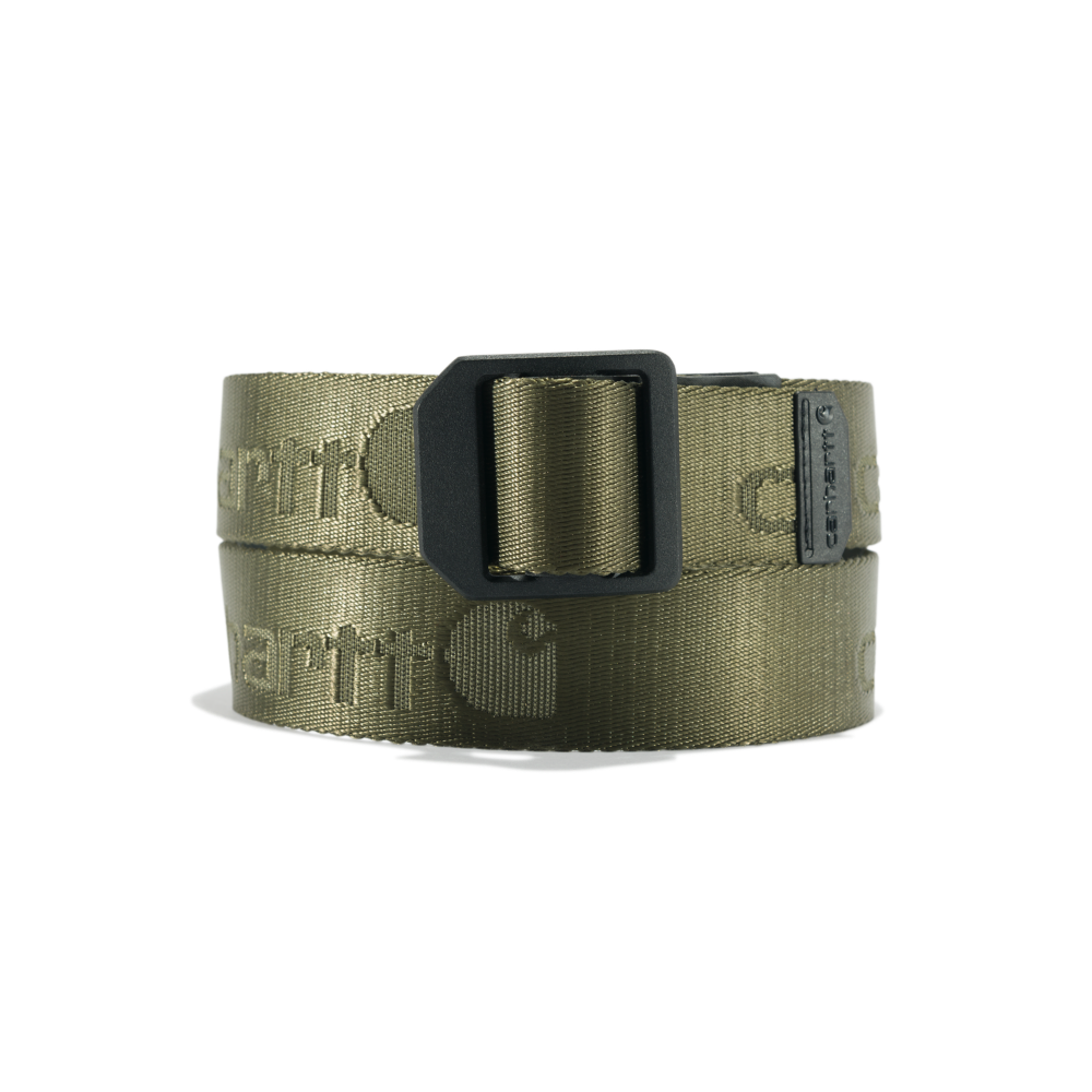 Para subir o bajar escaleras o trabajar en el bosque, este cinturón para hombre te proporciona el ajuste que buscas. Está fabricado en un tejido resistente para tareas pesadas y cuenta con el estampado gráfico emblemático Carhartt. El placa de la hebilla te permite apretar y colocar el cinturón en la posición adecuada.
