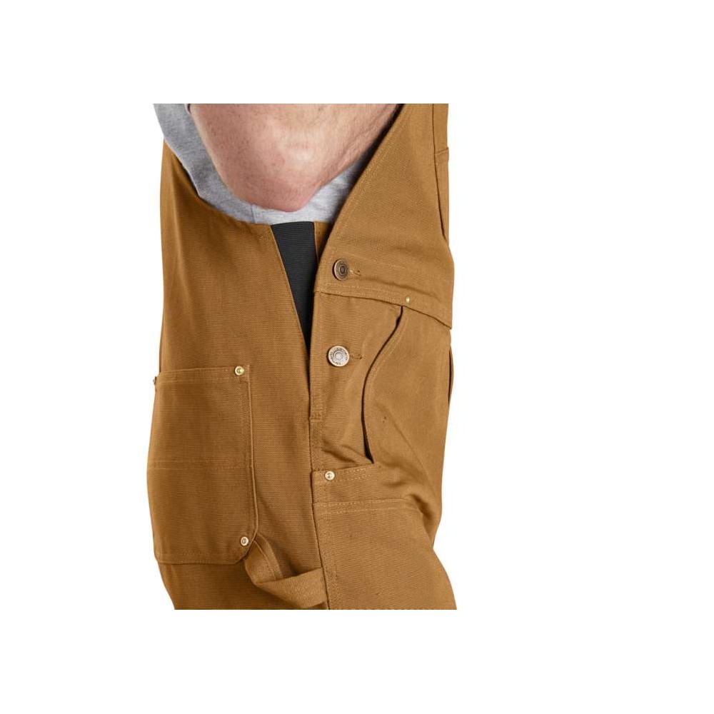- Los R01 son una versión actualizada de nuestros conocidos petos sin forro siguiendo las pautas de los diseñadores de Carhartt. Cuentan con varios detalles como, por ejemplo, un panel de protección desde la parte frontal hasta la parte posterior sobre los puños y elasticidad adicional alrededor de la cintura, los cuales se incorporaron gracias a los comentarios de la gente que tan duro trabaja y que utiliza nuestra ropa día tras día. Fiables y resistentes, los petos están fabricados con nuestra lona Duck pesada de algodón. Cuentan con tirantes elásticos, una capa doble en el área de las rodillas y amplios bolsillo